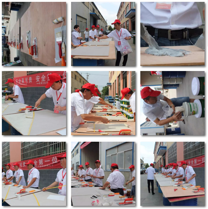 实践课,学员全员积极参与,自己动手制作防水多功能样板。除此之外,学员们还亲自体验了接缝专家、界面剂、墙固等一系列热销产品的操作。